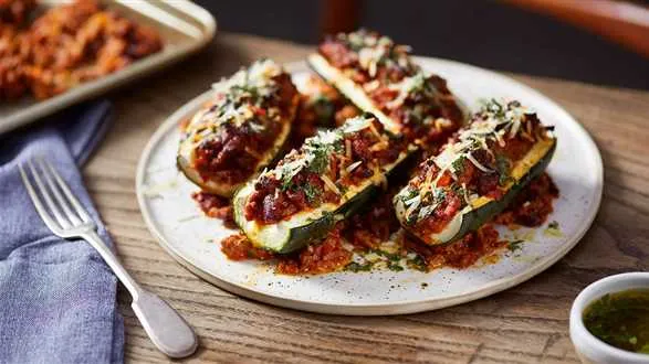 Chrupiące łódeczki z cukinii wypełnione mięsno-warzywnym farszem sprawdzą się w roli obiadu dla Twoich gości. Wypróbuj przepis Karola na faszerowaną cukinię – szybko trafi na listę ulubionych!