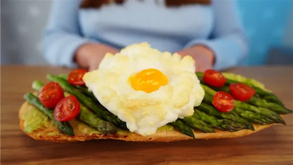 Pyszna kanapka z nietypowym pieczonym jajkiem w chmurce, delikatnymi szparagami i kremowym awokado. Przygotuj ją i zaskocz bliskich nowym pomysłem na wiosenne śniadanie!
