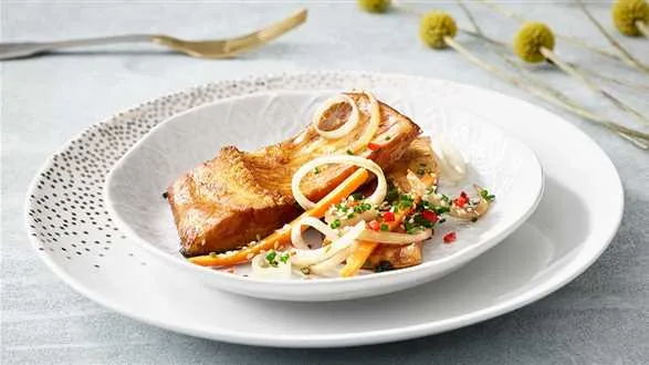 Karp w domowym sosie teriyaki z porem i sezamem • przepis • składniki • przygotowanie