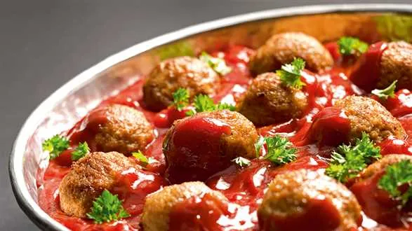 pulpeciki na talerz, polewamy sosem, przybieramy natką pietruszki.