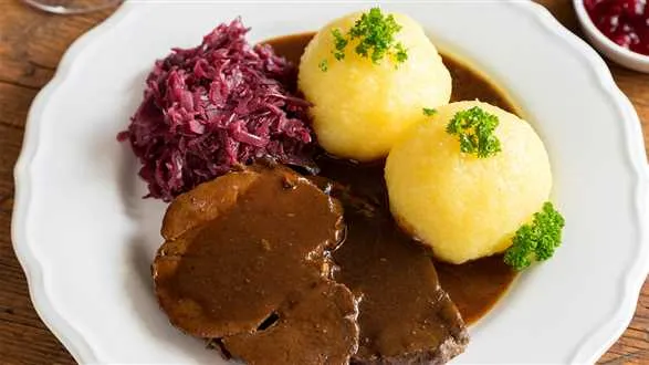 Domowy obiad inny niż zwykle? Na specjalną okazję podaj pieczeń z dzika w sosie myśliwskim, która świetnie komponuje się z pyzami i surówką z modrej kapusty. Pycha!