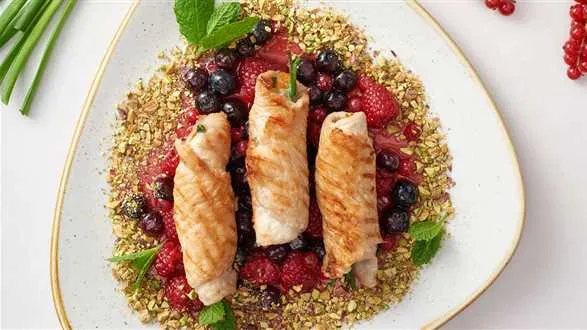 Doskonałe połączenie indyka faszerowanego serem z sosem z owoców leśnych - wypróbuj!