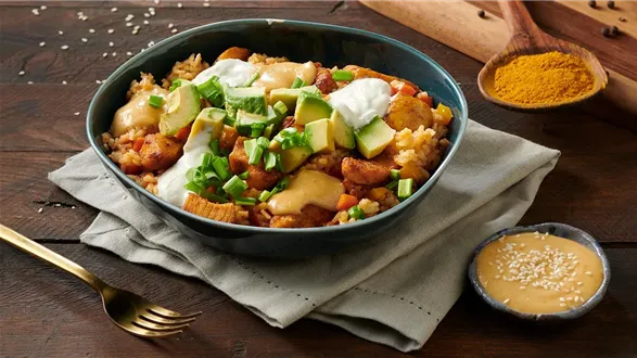 Pyszny smażony kurczak z ryżem z frytkownicy beztłuszczowej! Rozsmakuj się w tym pysznym daniu z dodatkiem aromatycznego sosu sezamowego i zaskocz bliskich nowym pomysłem na obiad.
