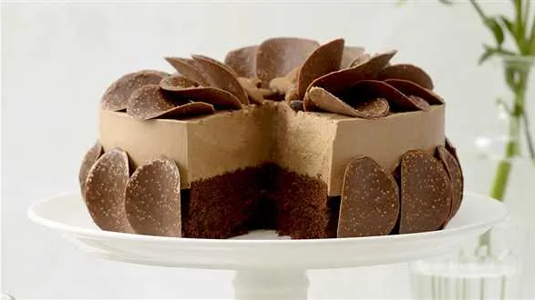 Wyjmujemy ciasto z lodówki i wylewamy mus na powierzchnię biszkoptu. Chłodzimy ciasto w lodówce około 1,5-2 godziny do całkowitego stężenia. Gotowy tort ostrożnie wyjmujemy z foremki i dekorujemy czekoladowymi płatkami.
